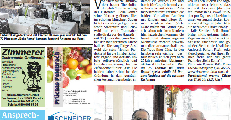 Unser Restaurant befindet sich in Harlaching im Süden von München.Hier bieten wir Ihnen seit bereits 25 Jahren die ganze Vielfalt der mediterranen Küche Italiens.